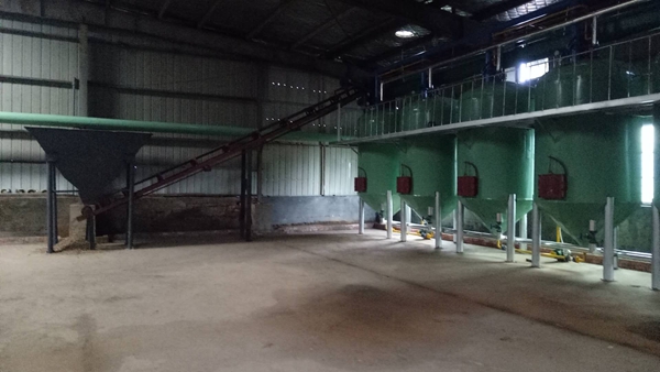 3、白土蒸烘: 浸泡萃取過的廢白土在浸出罐內(nèi)由直接蒸汽經(jīng)過下壓、上蒸后脫掉殘油及水分,達(dá)到干燥程度后由人工打開卸料門將廢白土放入出料絞龍,經(jīng)出料絞龍輸送至車間外廢料場。